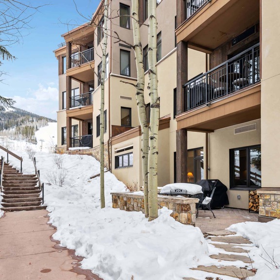This unique, ski-in, ski-out, first floor retreat offers the ultimate in ski-in, ski-out convenience with the slopes just steps from the patio, plus a family room with wood burning fireplace, a full kitchen, dual master suites, a queen bed in the third bedroom, washer/dryer, access to a ski locker with boot heater and garage parking for one vehicle.